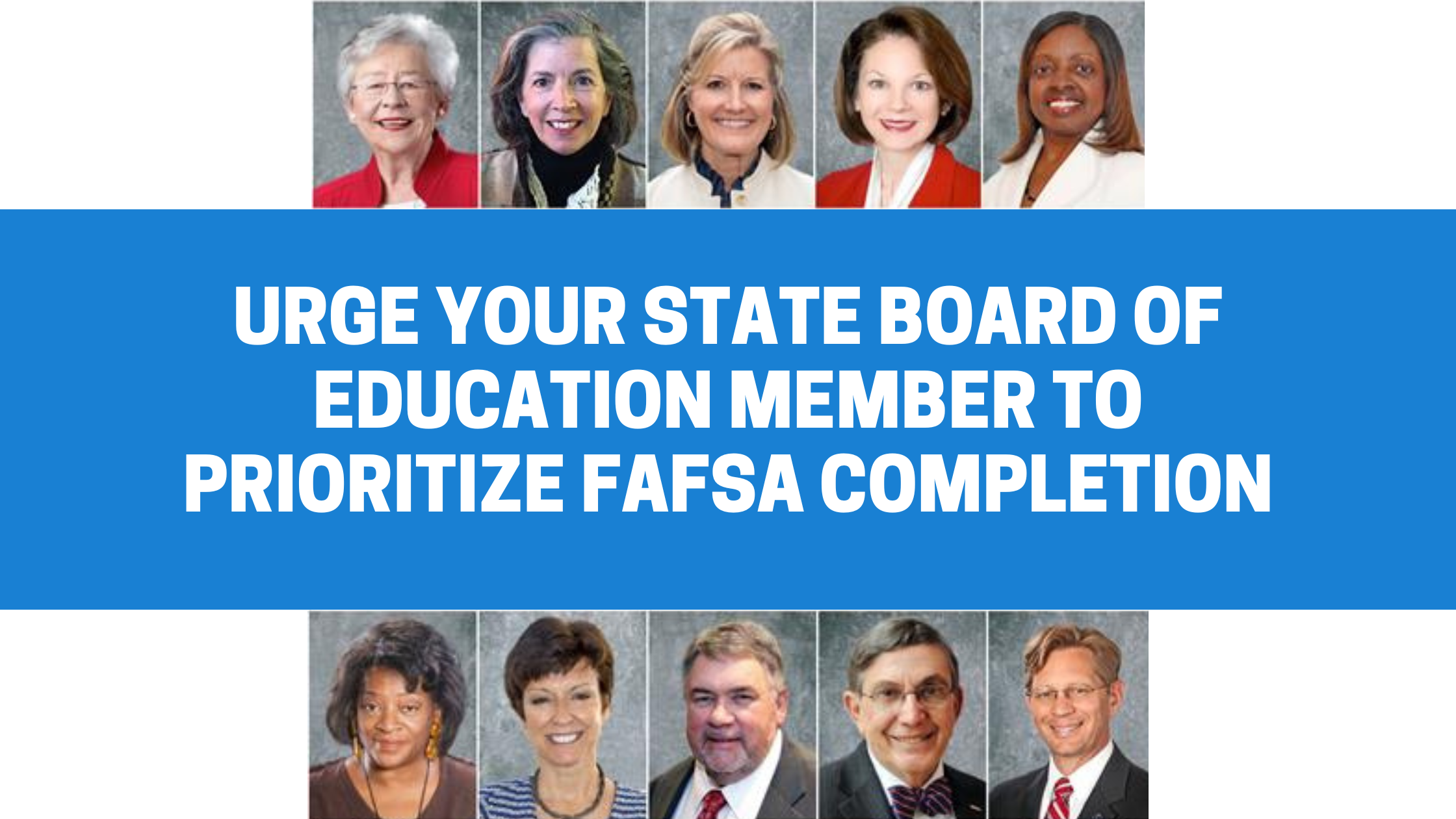 I am writing to request that you please consider including completion of the Free Application for Federal Student Aid (FAFSA) as a requirement for graduating high school seniors. As your constituent, I ask that you support this policy that will benefit students of our district and all learners in Alabama.